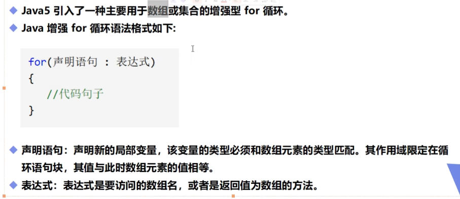 增强for循环:主要用于数组或集合