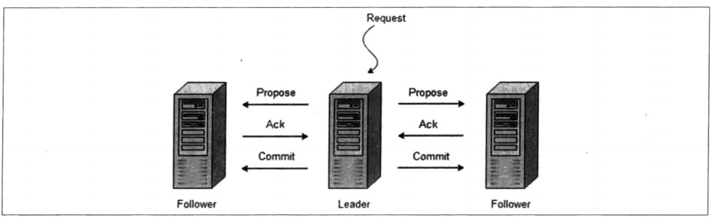 所有事务请求必须由一个全局唯一的服务器来协调处理,这样的服务器被称为Leader服务器,而余下的其他服务器则成为Follower服务器。Leader服务器负责将一个客户端事务请求转换成一个事务Proposal(提议),并将该Proposal分发给集群中所有的Follower服务器。之后Leader服务器需要等待所有Follower服务器的反馈,一旦超过半数的Follower服务器进行了正确的反馈后,那么Leader就会再次向所有的Follower服务器分发Commit消息,要求其将前一个Proposal进行提交。