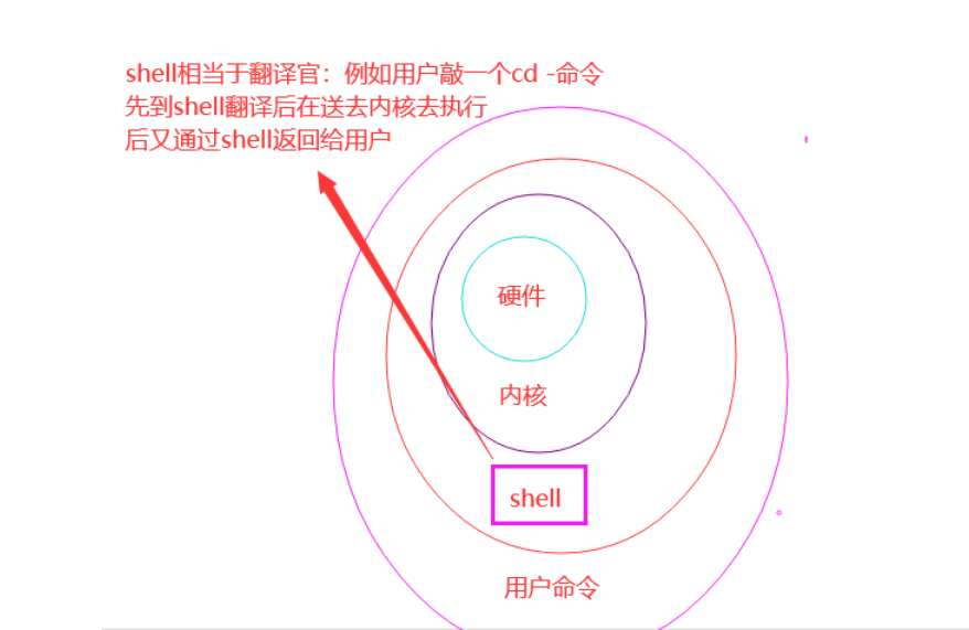 - shell程序是找到输入命令所对应的可以执行的程序或者代码,并将其分析后提供给内核分配资源将其运行起来,表现形式为一个或者多个进程,比如shell就是一个翻译官,针对用户所给的语言翻译成内核所读懂的文字,内核才能去执行用户所给的命令,并且又通过shell将结果去返回给用户。