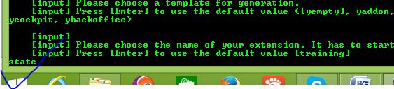 If simply press enter, by Default your extension name is " training" Other wise Type Your Extension name here.