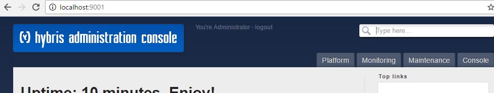 Step 6: Go to browser and type http://localhost:9001 and PRESS enter key. Open Hybris administrative console.