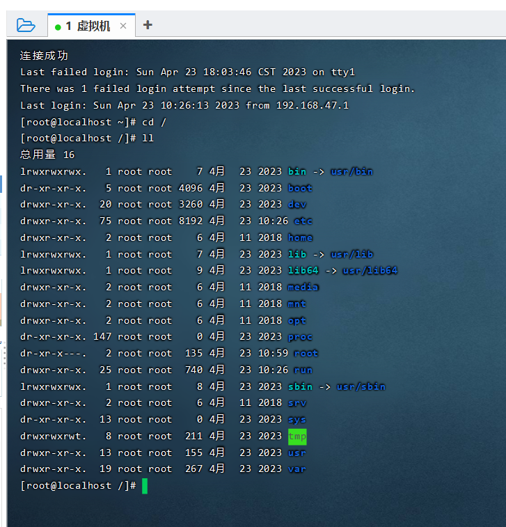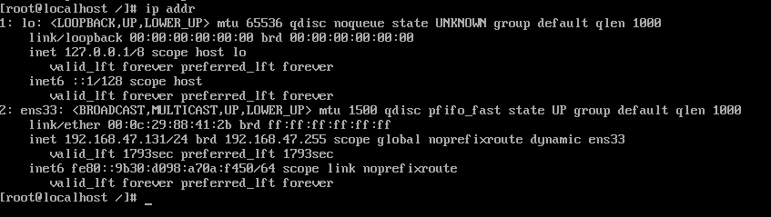 6.这个时候再:ip addr 就可以看到自己虚拟机IP,已我的为例:192.168.47.131;远程连接到虚拟机。