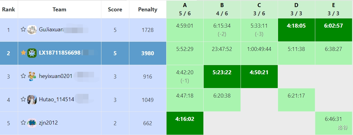 比赛难度配置:黄-蓝-蓝-蓝-蓝