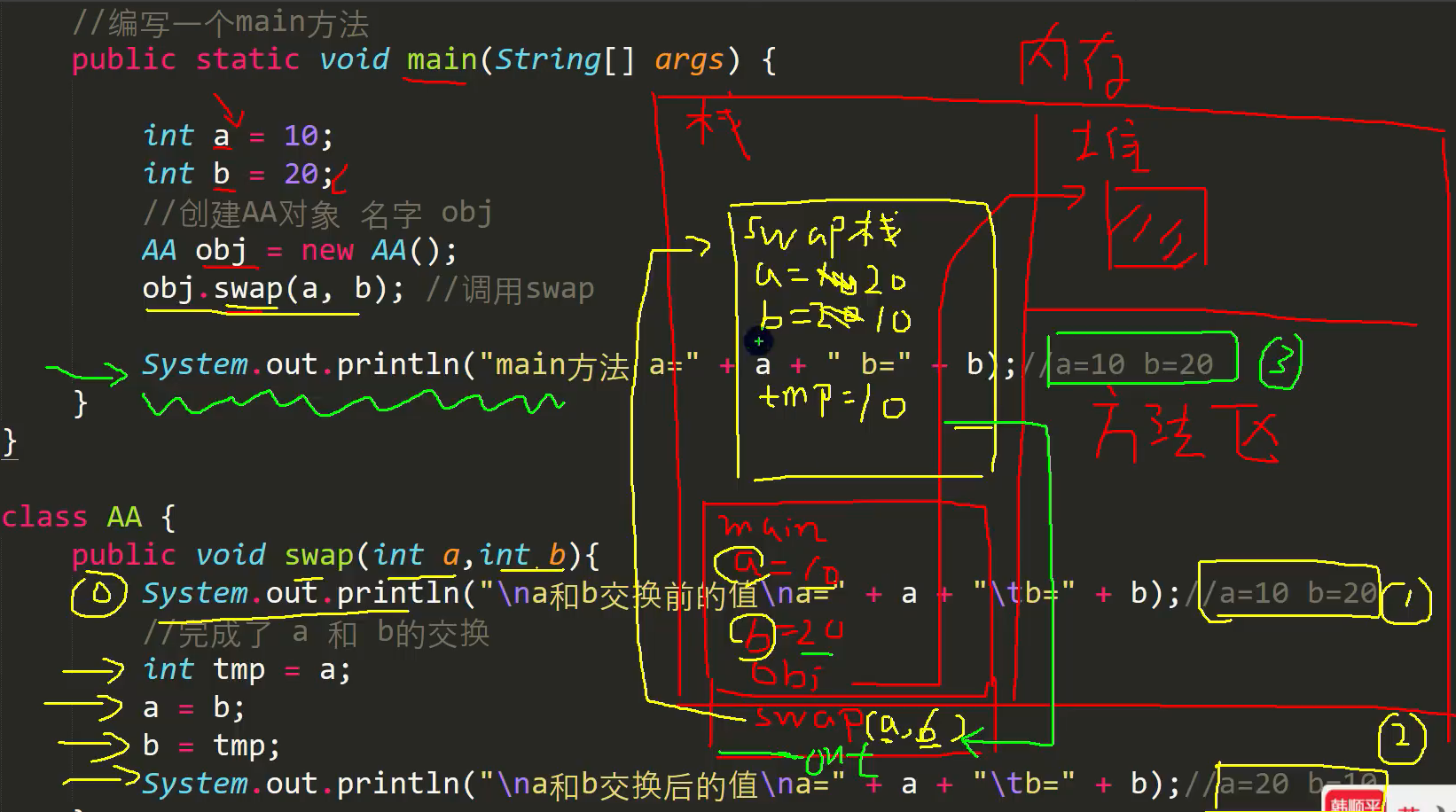 如果形参是基本数据类型, 传递的是 值, 它不会影响main栈中的变量值。