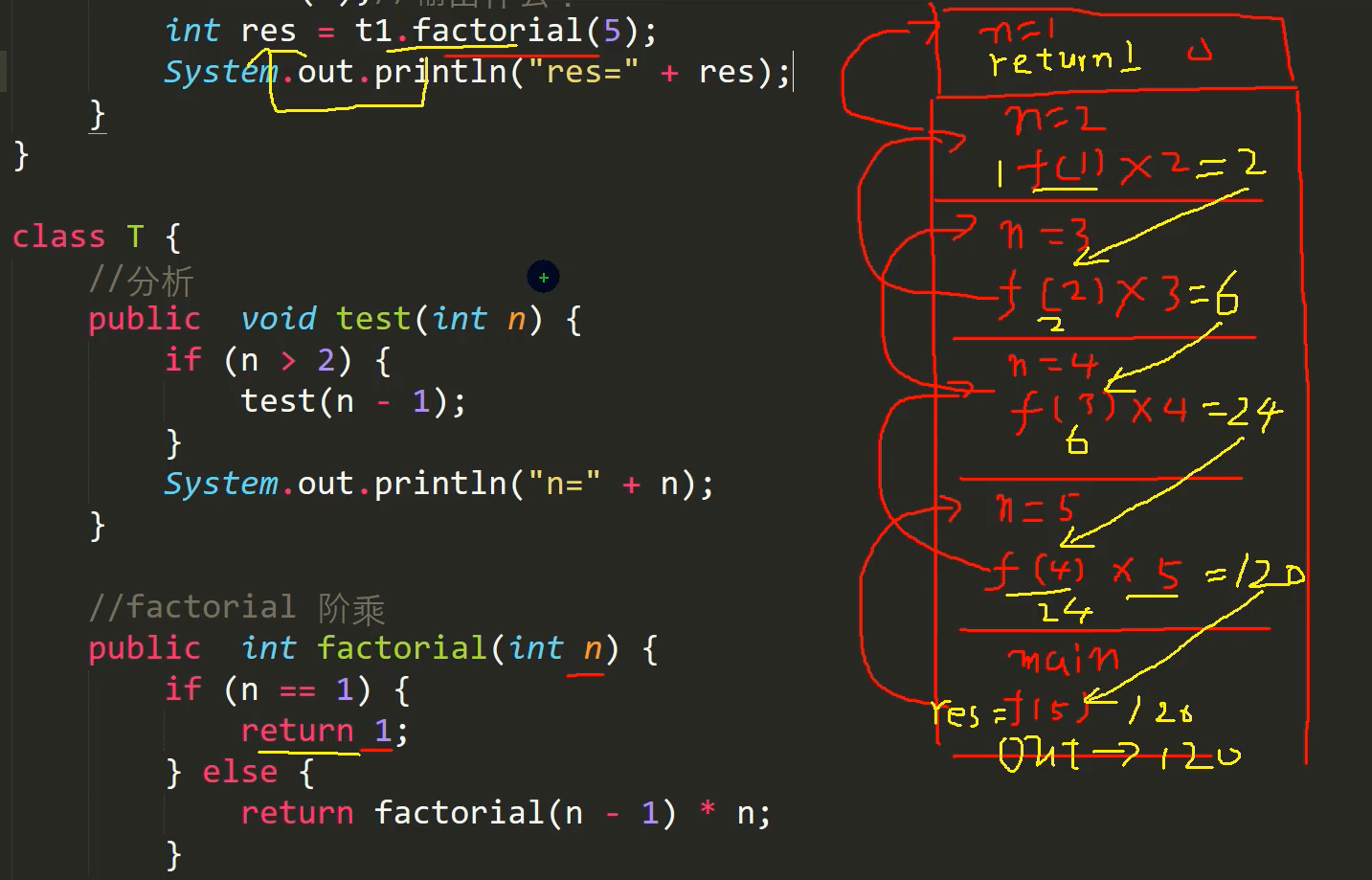 阶乘递归调用: