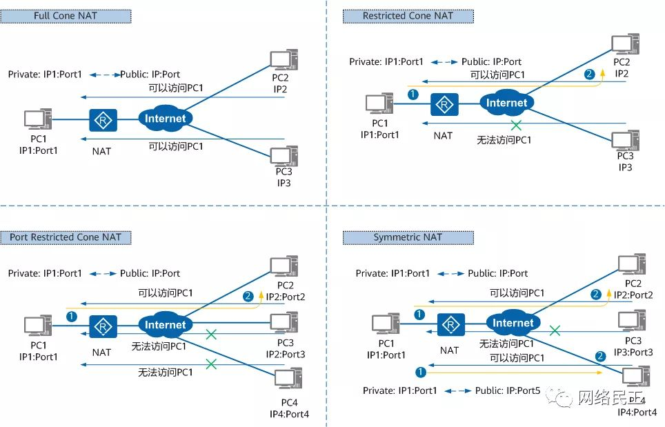 NAT有四种类型,在 RFC3489 第 5 章介绍。