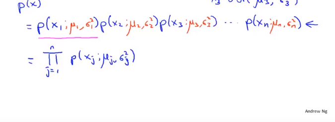 设定一个threshold,其中对于样本x如果p(x)<threshold,则为异常