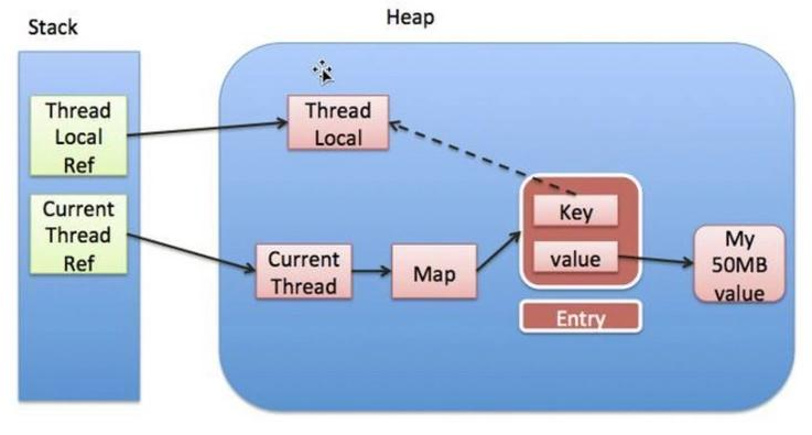 对于一个ThreadLocal变量,我们在Thread实例里面对其有一个强应用(ThreadLocalRef),而ThreadLocalMap中对其存在一个弱引用(key)。