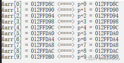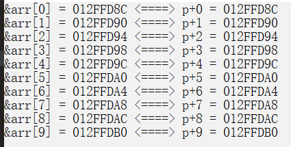 printf("&arr[%d] = %p <====> p+%d = %p\n", i, &arr[i], i, p+i);