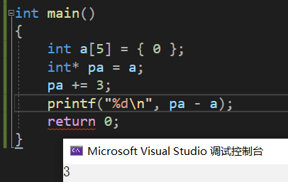 下面我将a的首地址赋给pa,然后将pa的值+3,打印两个地址之差
