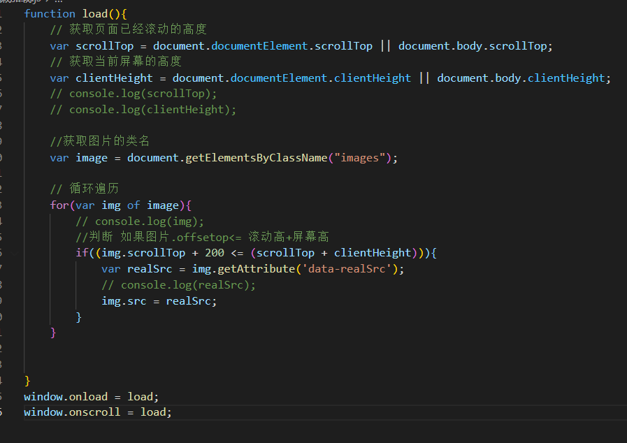 //判断 如果图片.offsetop<= 滚动高+屏幕高