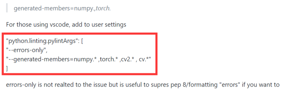"python.linting.pylintArgs": [ "--disable=W,C,E" ], //忽略指定报错 "python.linting.enabled": false //关闭pylint 报错 (不包括语法错误)
