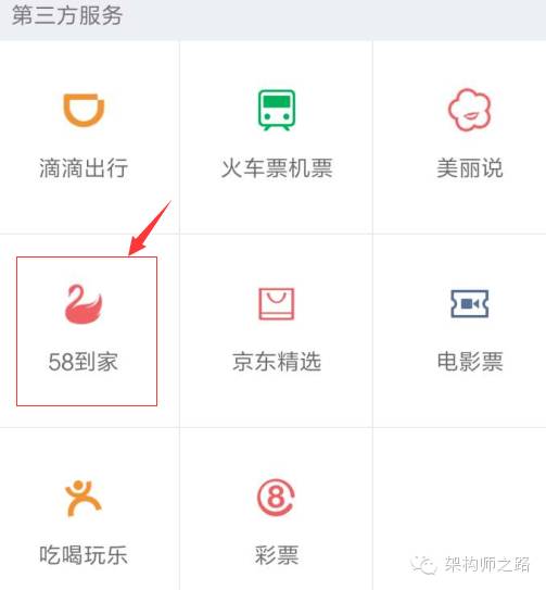 大伙打开微信钱包,会发现58到家入驻了微信钱包的一级入口(如下图),这个入口流量极大,微信要求被接入的H5必须能抗住n万的qps(58到家的系统是偏交易的系统,虽然一天100w订单其实也没多少请求),这是之前的业务系统没有遇到过的,要抗住这个n万的qps的优化思路是怎么样的呢?