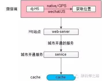 步骤一:微信端通过native的GPS定位或者微信的js-sdk获取用户当前所在城市,并往web-server发送http请求