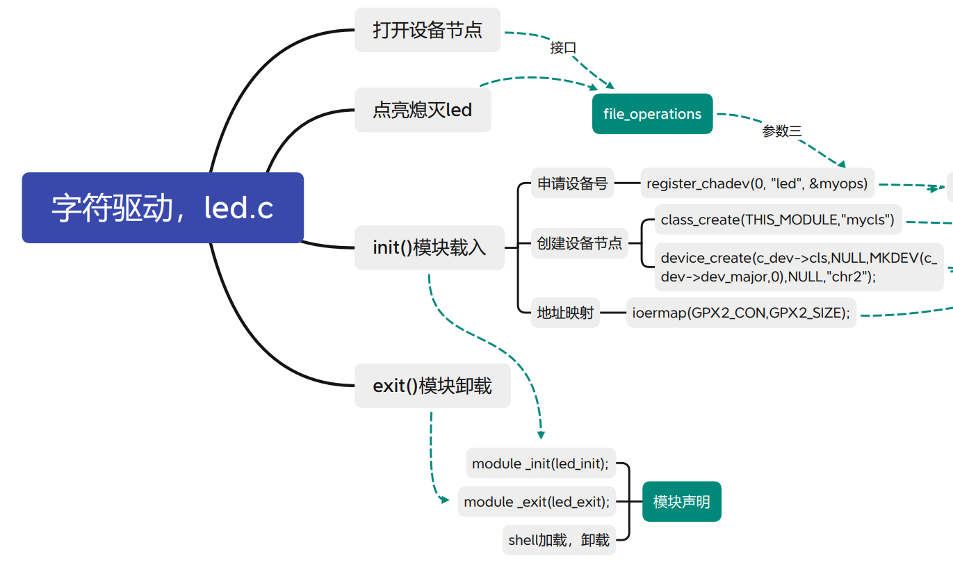 一、根据下面的应用程序代码,试写出对应的LED灯的字符设备驱动程序。