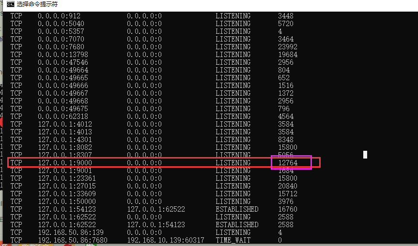 - 运行netstat -ano,找到报错信息提示的端口号那一行,记住最后那个数字