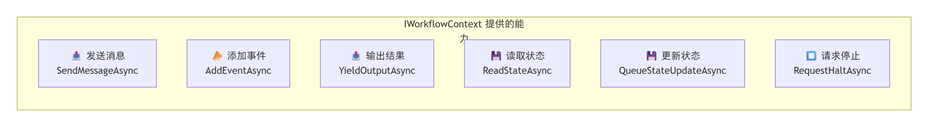 | WorkflowContext | 提供订单状态读写、消息发送能力 |