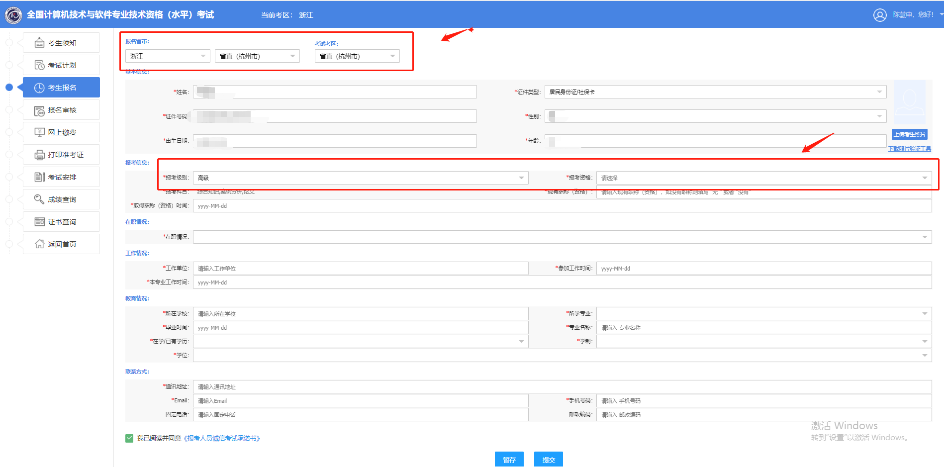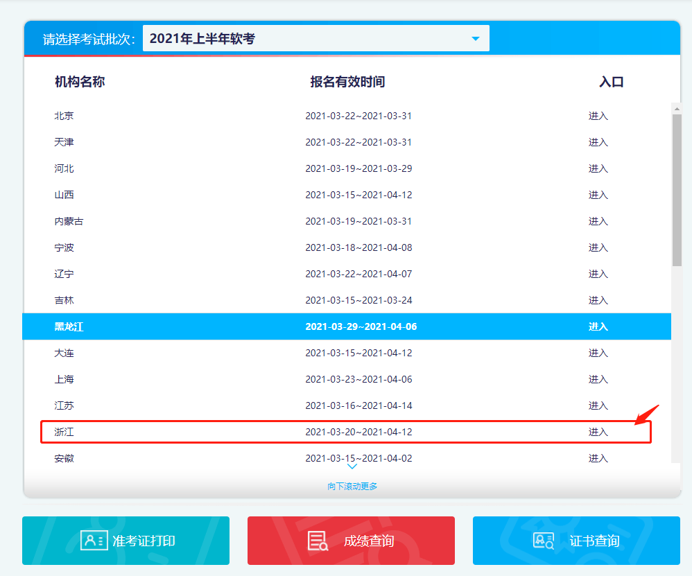2. 点击报名入口(选择自己所在省,以浙江为例)