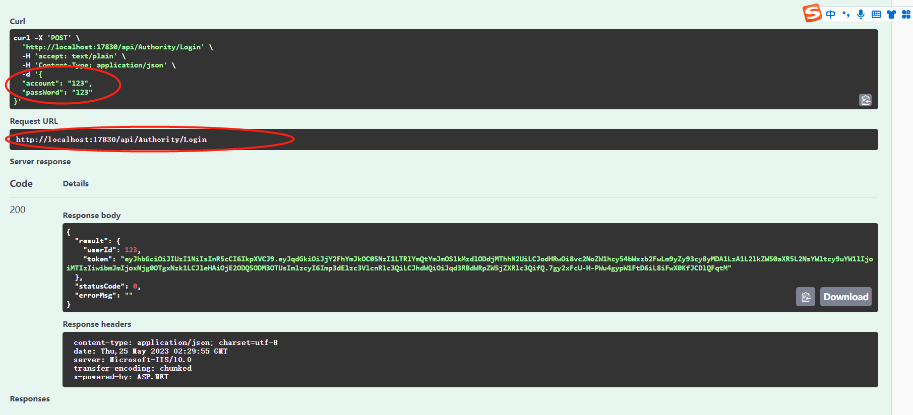 SWAGGER调用显示正常