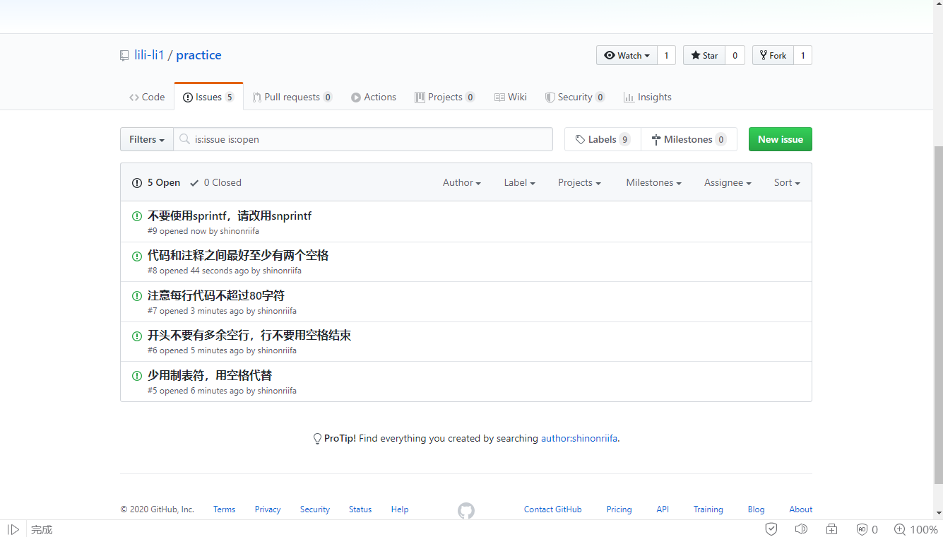 (4)通过github issues向项目维护者提交问题(issue),注意一个issue 只报告一个问题,多个问题需放在多个issue中,以便跟踪。