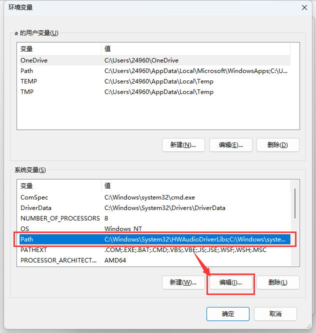 (如果编辑时,Path中的路径都在一个文本框,将文件夹路径放到末尾,用英文分号隔开即可)
