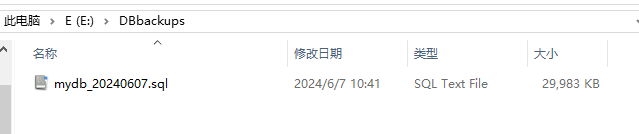 mysql -uroot -p123456 dbname < "E:\DBbackups\mydb_20240607.sql"