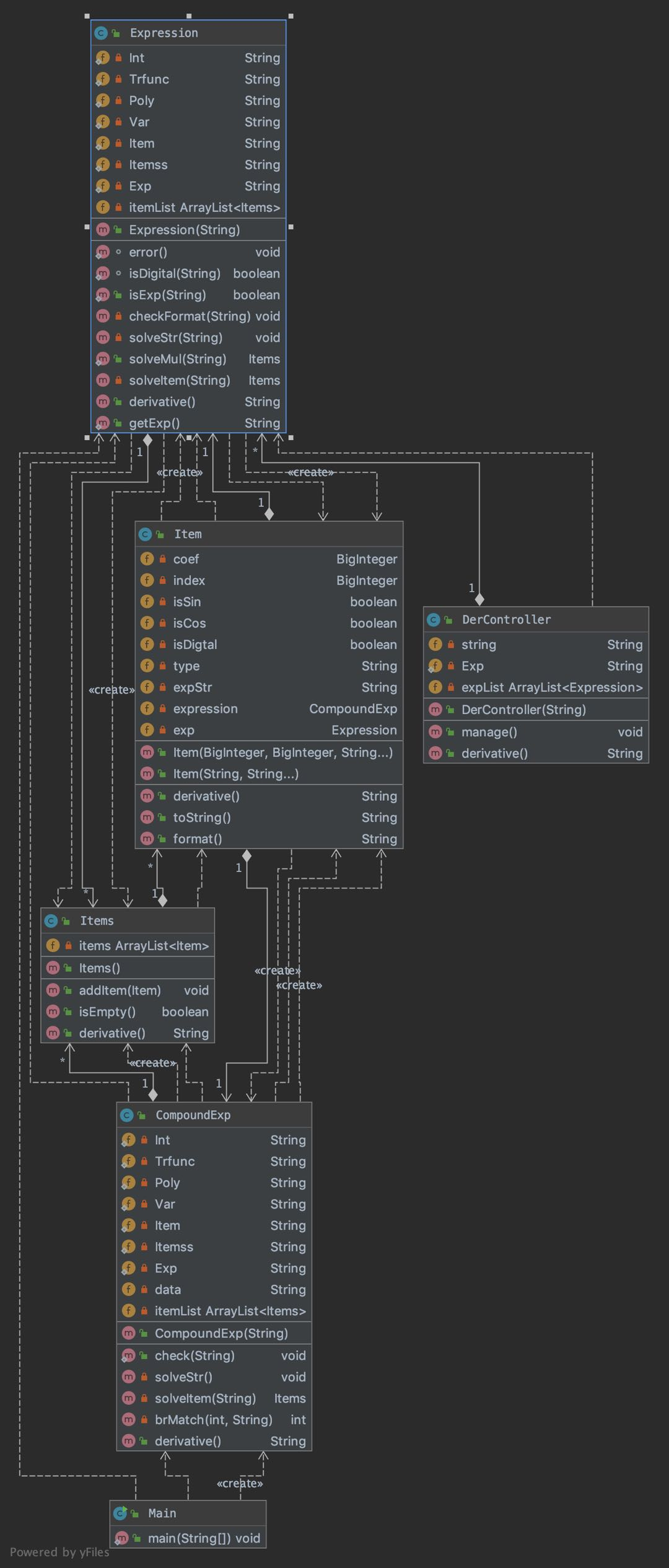非说一个模式的话,我的三次代码更贴近组合模式item ,items ,exp类作为组件,items保存多个item类的实例,exp类保存多个iyems类实例在求导时调用exp对象的der方法进而调用items,item类的求导方法,并对结果进行组合整理再依次返回。