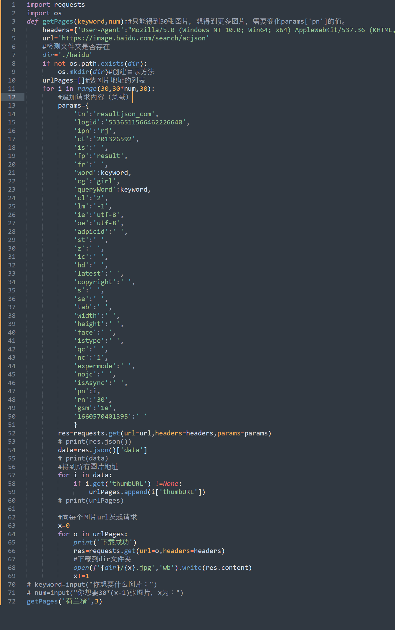 keyword=input("你想要什么图片:") num=input("你想要30*(x-1)张图片,x为:")
