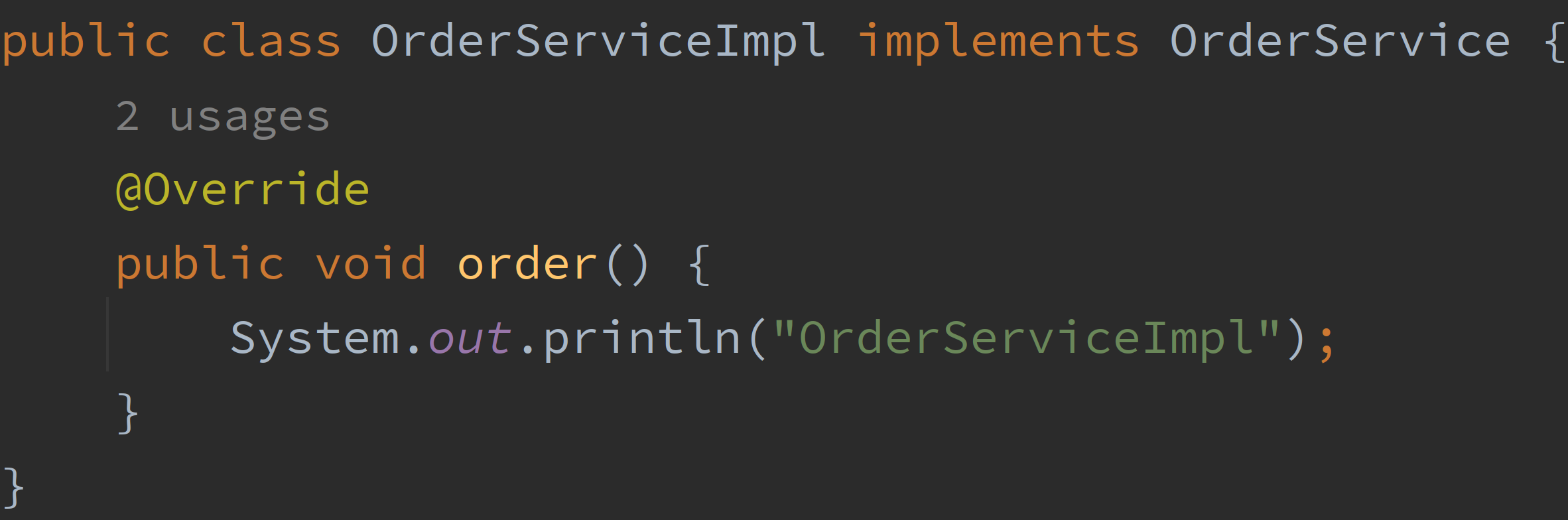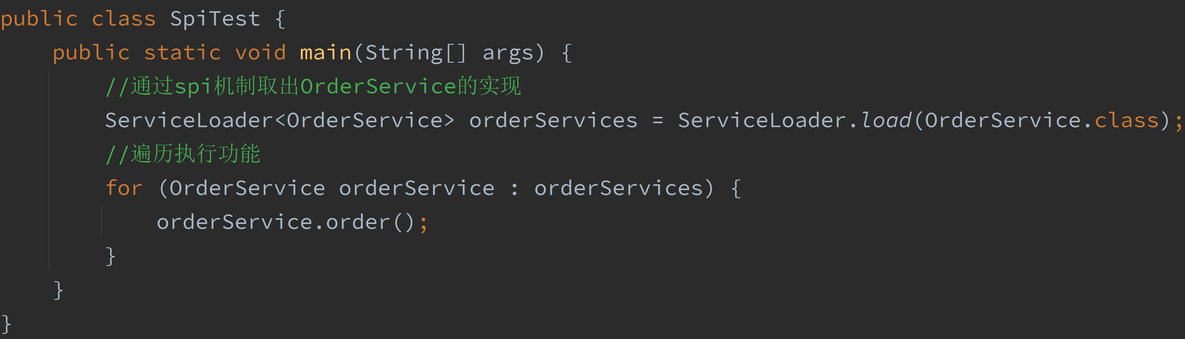 这是典型的面向接口编程思维。这样做肯定没问题,但是接下来介绍一个新的方式来实现这个功能。就是java提供的spi机制。我这里创建两个OrderService的实现,方便演示更加直观。