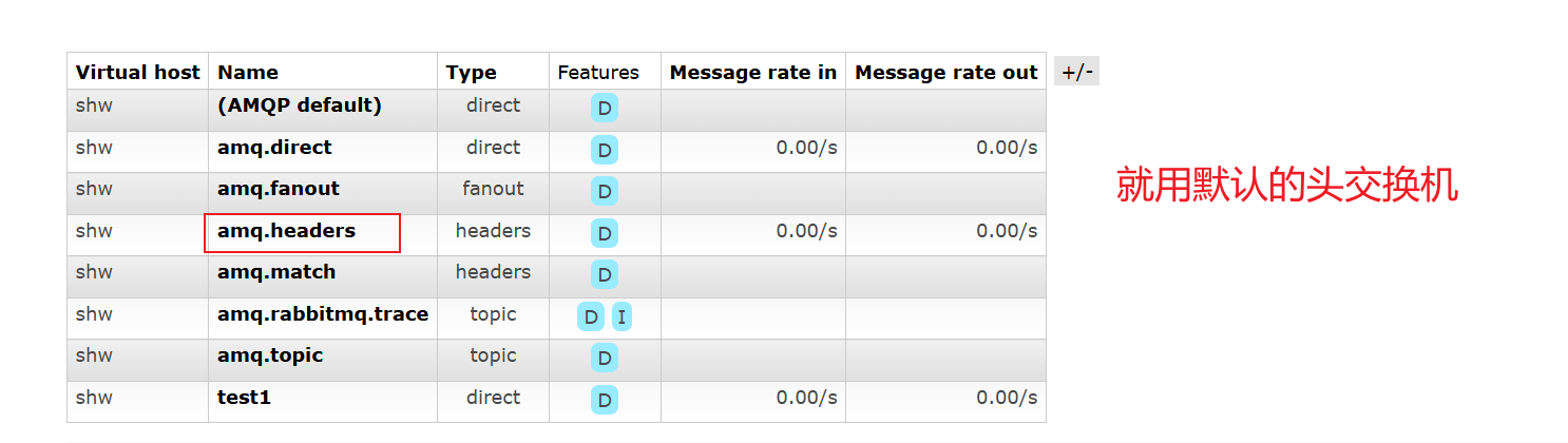 由于rabbitmq默认自带头交换机,这里我就不创建了