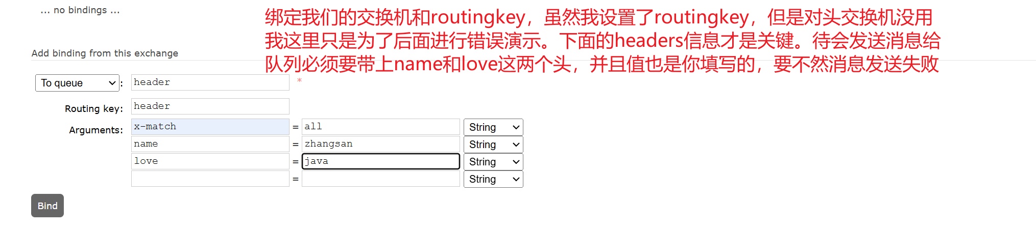 比如我们在绑定队列和交换机时候,会填一些参数: