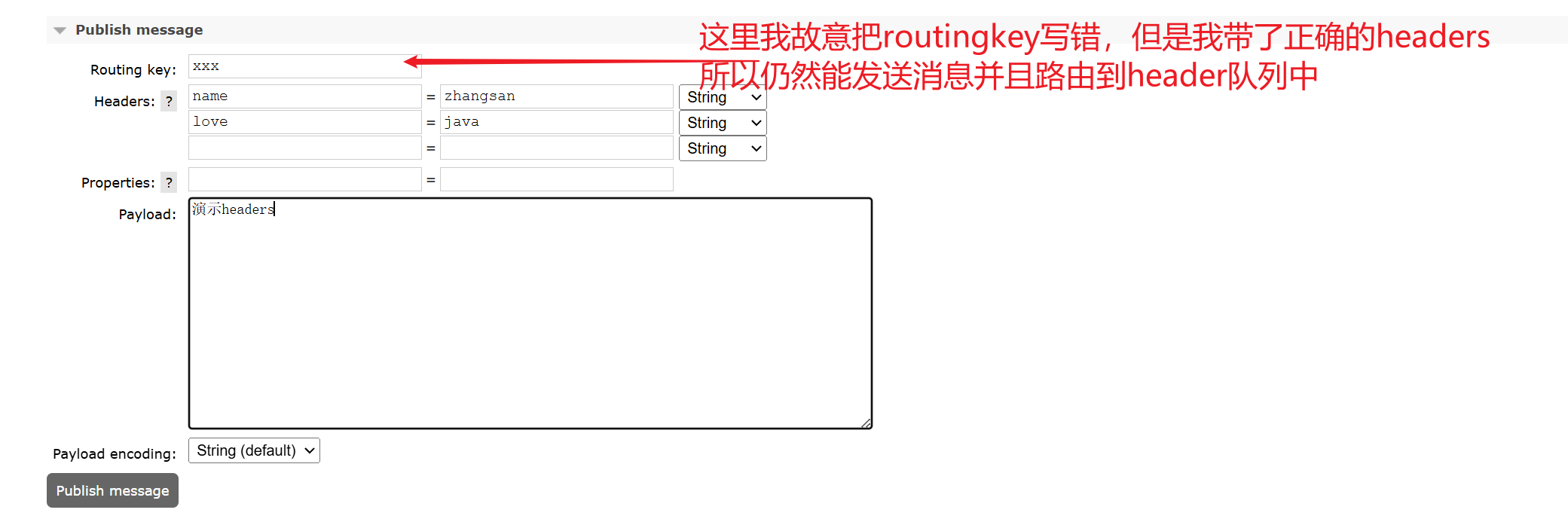 在rabbitmq的网页控制台界面发送消息的时候,有如下几个消息参数