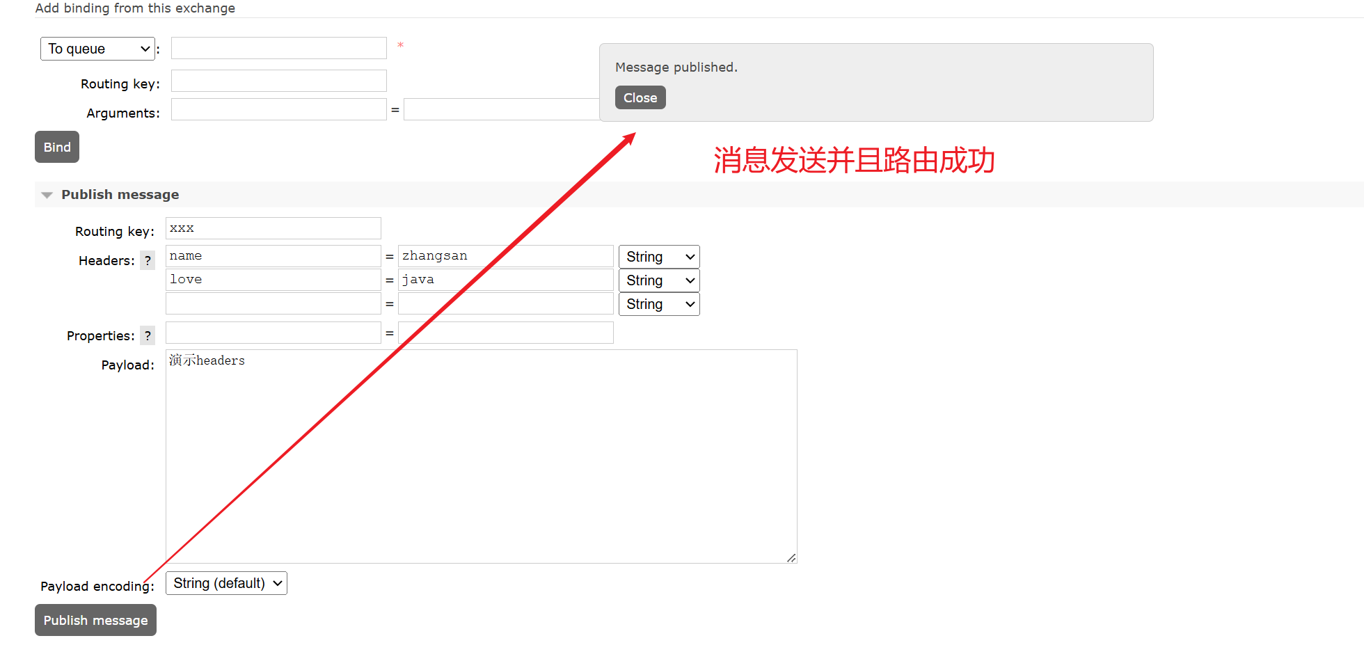 比如参数填 x-match 值为all时候,要求消息的所有headers键值对都与队列绑定的headers键值对匹配,消息才会被路由到该队列,当参数为 x-match any 时候,只要有一个键值对