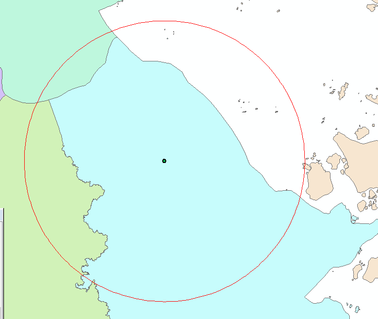 1.试图以一点为圆心画圆,结果(建立缓冲区)画了个椭圆。如下: