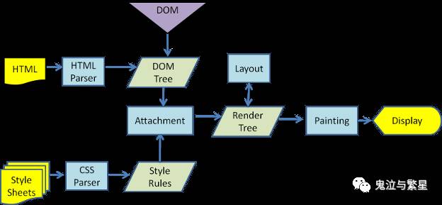 主要参考这篇「 How browsers work」(http://taligarsiel.com/Projects/howbrowserswork1.htm)来看,浏览器渲染的过程以 WebKit 为例大致如下: