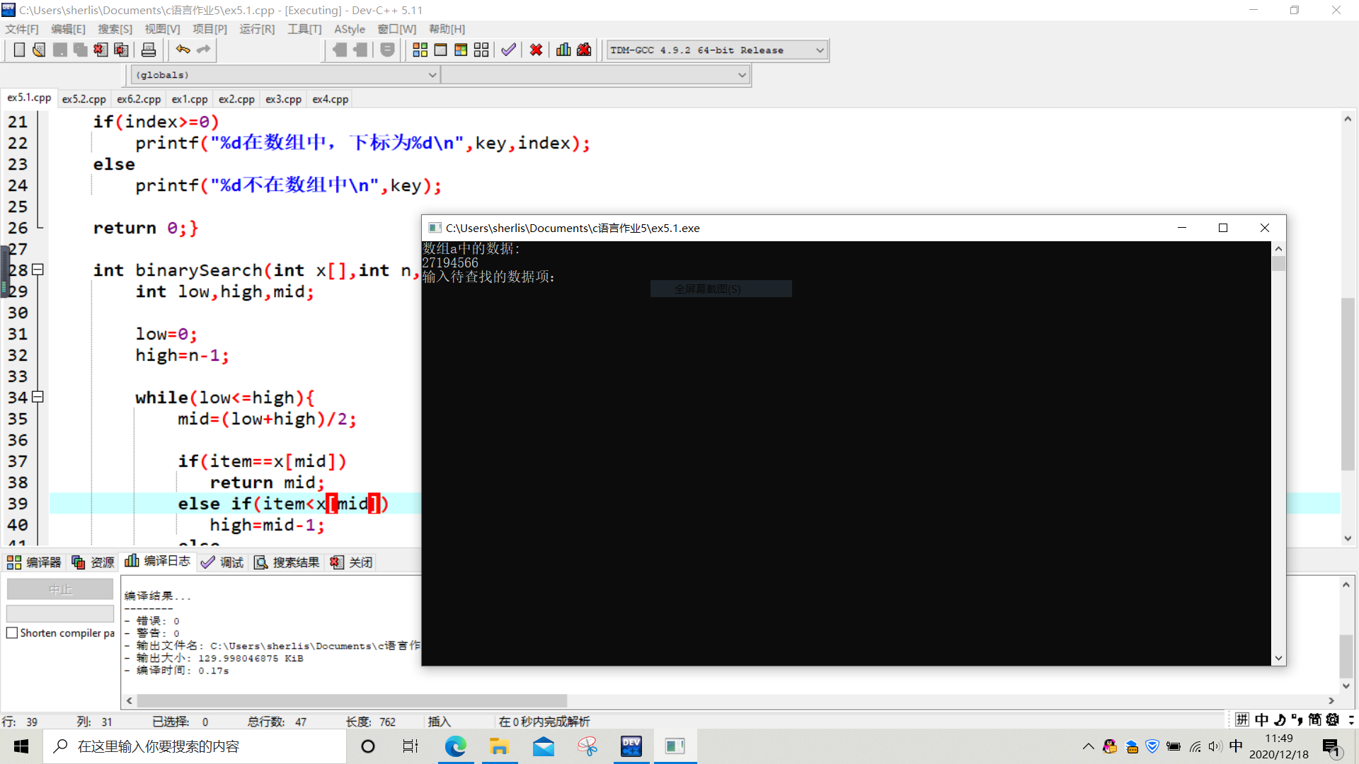 int binarySearch(int *x,int n,int item){