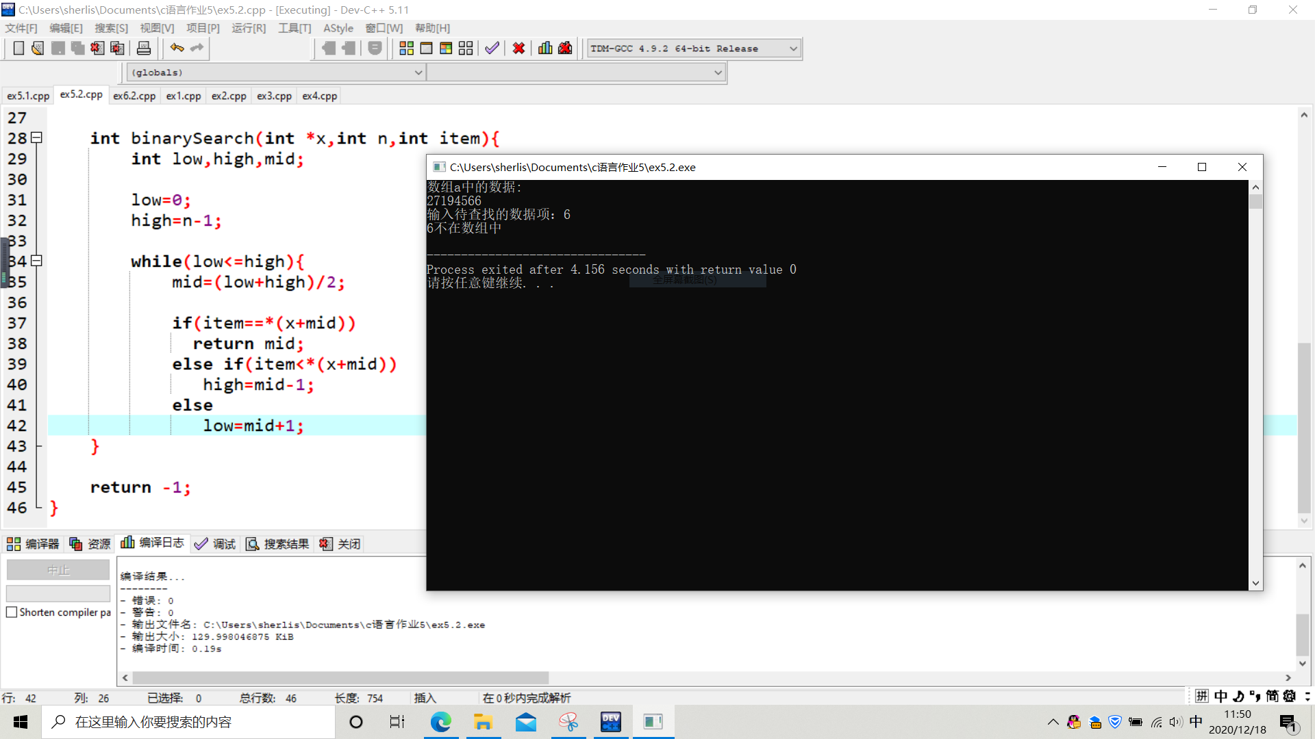 printf("%d在数组中,下标为%d\n",key,index);