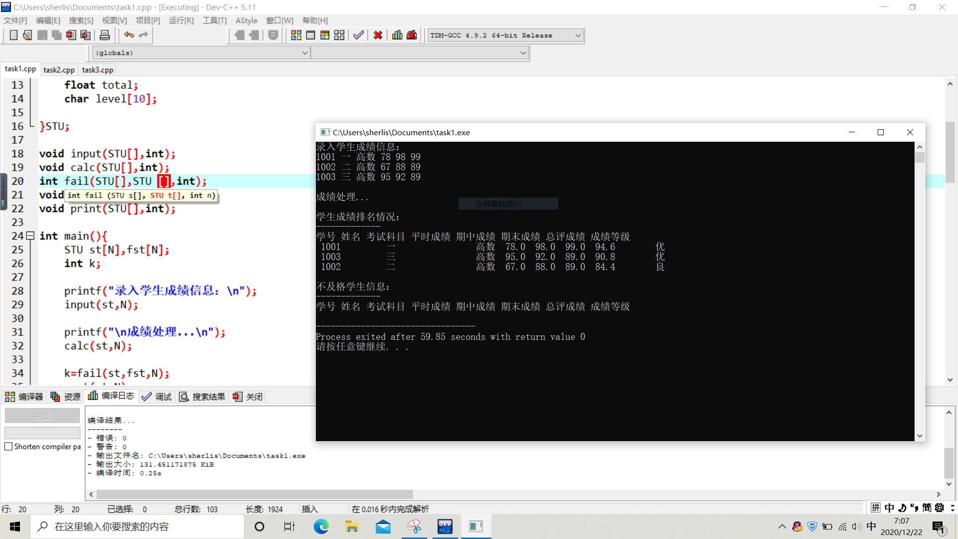 int fail(STU[],STU [],int);