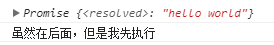 async function timeout() { return 'hello world' } console.log(timeout()); console.log('虽然在后面,但是我先执行');