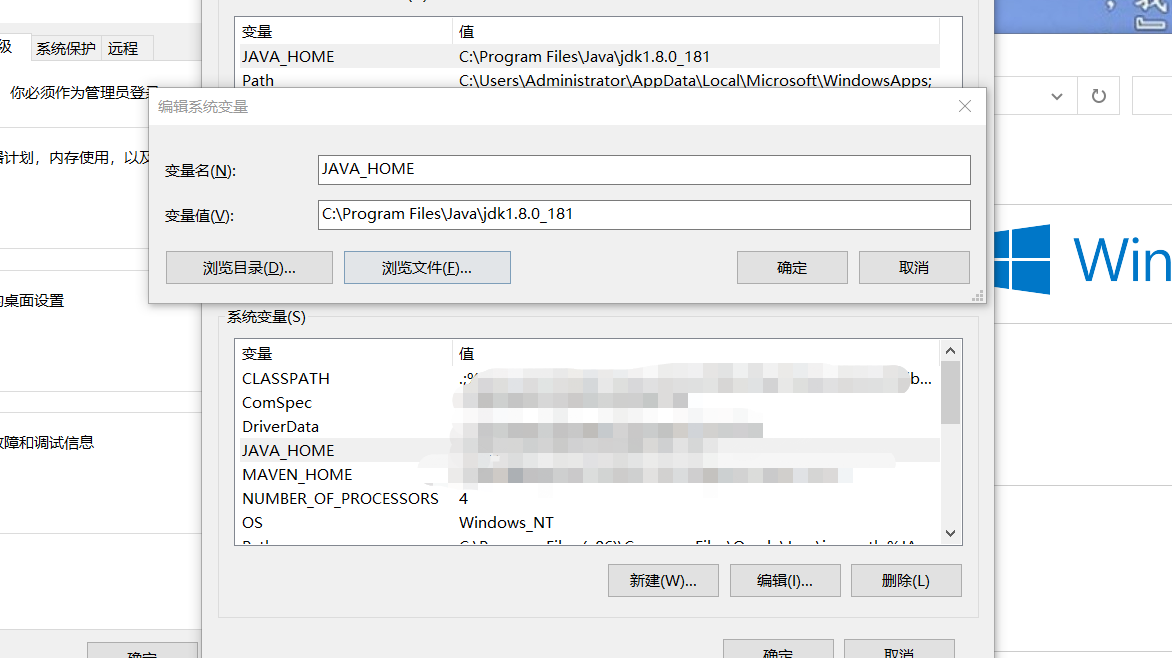 1.点击新建变量名设置为JAVA_HOME 变量值设置为当前jdk所在的安装目录