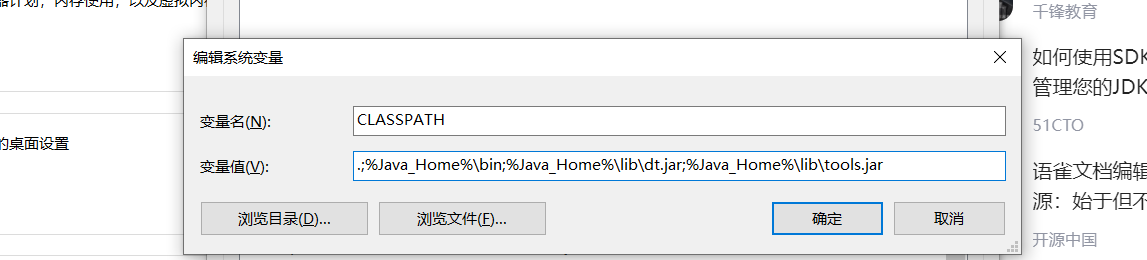 2、.点击新建变量名为CLASSPATH 变量值 .;%Java_Home%\bin;%Java_Home%\lib\dt.jar;%Java_Home%\lib\tools.jar (注意前面有一个点)