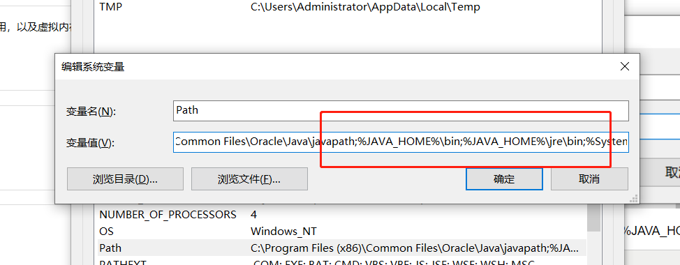 4、以上配置皆是系统变量中的配置,下面一个是用户变量中的配置