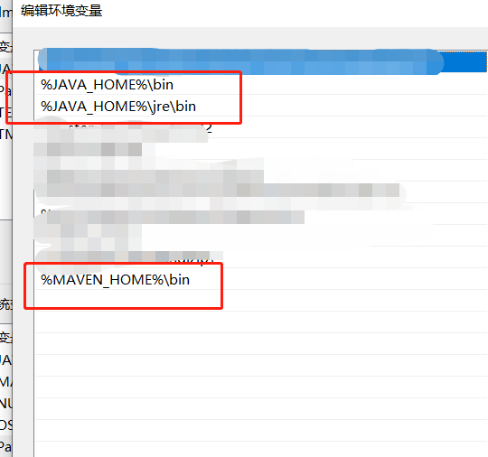 3、在【系统变量中】我们可以看到path变量已经存在,那么我们只需要点击【编辑】,进入path变量的编辑配置环境变量(%JAVA_HOME%\bin;%JAVA_HOME%\jre\bin;)还有(%MAVEN_HOME%\bin;)