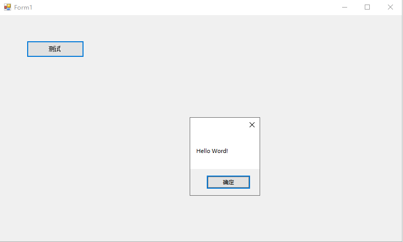 public partial class Form1 : Form { public Form1() { InitializeComponent(); } private void Click_Click(object sender, EventArgs e) { MessageBox.Show("Hello Word!"); } }