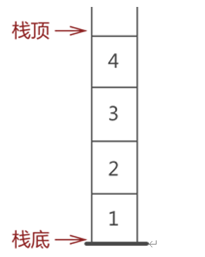 通常,栈的开口端被称为栈顶;相应地,封口端被称为栈底。因此,栈顶元素指的就是距离栈顶最近的元素,拿图 2 来说,栈顶元素为元素 4;同理,栈底元素指的是位于栈最底部的元素,图 2 中的栈底元素为元素 1。