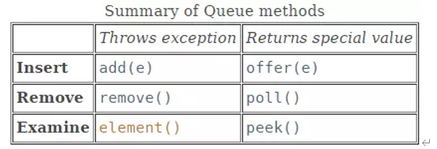 当队列为空时 element() 抛出异常;peek() 不会报错,只会返回 null。