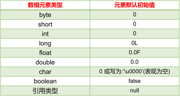 引用数据类型数组:数组、接口、类的默认数组元素的初始化值为null