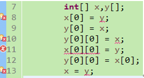 注:int[] x,y[]; 相当于 int[] x; int[] y[]; x是一维数组,y是二维数组