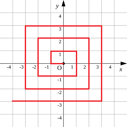 对于整点(X, Y),我们定义它到原点的距离dis(X, Y)是从原点到(X, Y)的螺旋折线段的长度。