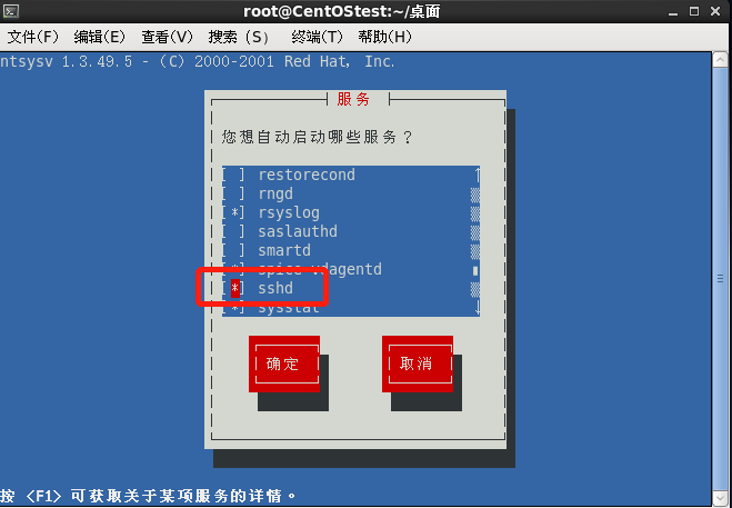 Linux系统输入命令setup ,选择系统服务,查看sshd有*号,说明已启用。